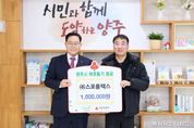 (중앙뉴스타임스 = 방재영 기자) 양주시가 31일 ㈜스포플렉스로부터 연말을 맞아 이웃돕기 성금 100만 원을 기탁받았다. 이날 기탁식에는 남병태 대표가 참석했으며, 기탁된 성금은 경기 사회복지공동모금회를 통해 양주시 취약계층 지원에 사용될 예정이다. 남병태 대표는 “연말을 맞아 지역의 어려운 이웃들에게 작은 힘이라도 보태고 싶었다”며 “앞으로도 지역사회와 함께하는 기업으로서 나눔을 이어가고 싶다”고 말했다. 시 관계자는 “㈜스포플렉스의 따뜻한 기부에 감사드리며, 기부금이 꼭 필요한 곳에 잘 전달돼 많은 분들에게 힘이 될 수 있도록 최선을 다하겠다”고 전했다. 한편 광적면에 소재한 ㈜스포플렉스는 헬스기구 제조업체로, 사회적 책임을 실천하며 나눔 활동에 동참하고 있다.