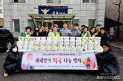 (중앙뉴스타임스 = 방재영 기자) 인천 부평구 부평4·5동은 지난 29일 인천삼산경찰서 중앙지구대 생활안전협의회로부터 지역사회에 온정을 나누기 위한 떡국 100인분을 전달받았다. 이번 후원품은 떡국떡, 소고기, 육수 등을 각각 용기에 소분·포장한 간편식 꾸러미(밀키트)로, 중앙지구대와 생활안전협의회가 새해를 맞아 준비했다. 부평4·5동은 지역 내 저소득 취약계층 100가구에 후원품을 지원할 예정이다. 김철 생활안전협의회위원장은 “새해를 맞아 이웃들과 따뜻한 마음을 나누고자 이번 떡국 나눔을 준비했다”며 “작은 정성이지만 지역사회에 도움이 되길 바란다”고 말했다. 윤이수 부평4동장은 “이웃을 위한 따뜻한 나눔을 실천해 주신 생활안전협의회에 감사드리며, 마련된 떡국은 필요한 가정에 잘 전달하겠다”고 전했다.