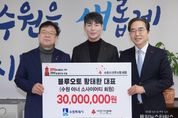 (중앙뉴스타임스 = 방재영 기자) 황태환 블루오토 대표가 12월 31일 “취약계층 아동 지원에 사용해달라”며 3000만 원을 수원시에 기부했다. 수원시는 경기사회복지공동모금회 지정기탁 방식으로 후원금을 취약계층 아동 지원에 사용할 예정이다. 수원시청에서 열린 기부금 전달식에는 김현수 수원시 제1부시장, 황태환 블루오토 대표, 김효진 경기사회복지공동모금회 사무처장 등이 참석했다. 황태환 블루오토 대표는 “기부금이 도움이 필요한 아동에게 보탬이 되길 바란다”며 “지역사회의 이웃을 위한 나눔 활동을 꾸준히 이어가겠다”고 말했다. 김현수 제1부시장은 “수원시에 관심을 기울여주시고, 소중한 나눔을 실천해 주신 블루오토에 진심으로 감사드린다”며 “보내주신 따뜻한 마음은 도움이 필요한 취약계층 아동에게 큰 희망과 용기가 될 것”이라고 밝혔다.