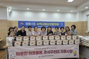 (중앙뉴스타임스 = 방재영 기자) 시흥시 정왕4동 지역사회보장협의체는 지난 17일 추석을 맞아 관내 취약 가구 30가구에 추석 꾸러미를 전달하며 이웃사랑을 실천했다. 이번 행사는 추석을 맞아 홀로 외롭게 명절을 보내는 홀몸 어르신과 경제적으로 어려움을 겪는 취약 가구, 거동이 불편해 외출이 어려운 가구 등을 대상으로 마련됐다. 올해 추석 꾸러미는 지역사회보장협의체 기금으로 한 가구당 3만 원 상당의 고구마와 쌀 등으로 구성됐으며, 안부 확인을 겸해 직접 전달됐다. 신원철 정왕4동 지역사회보장협의체 민간위원장은 “어르신들이 따뜻한 명절을 보내시길 바라는 마음에서 준비했다”라며, “앞으로도 지역사회의 어려운 이웃을 돕기 위한 활동을 적극적으로 추진하겠다”라고 말했다. 이은정 정왕4동장은 “명절을 맞아 이웃과 나눔을 실천하기 위해 늦은 시간까지 애써주시는 협의체 위원들에게 깊이 감사드린다”라며, 동에서도 이웃에 관심과 사랑이 꾸준히 이뤄질 수 있도록 노력하겠다”라고 말했다.