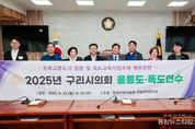 (중앙뉴스타임스 = 방재영 기자) 구리시의회는 22일부터 24일까지 3일간 울릉도와 독도를 방문해 광복 80주년을 기념하고, 대한민국의 주권과 영토 지키기의 중요성을 되새기는 의정연수를 실시했다. 구리시의회 시의원과 의회소속 공무원 등으로 구성된 방문단은 22일 울릉군의회를 방문해 지난 3월 제346회 구리시의회 임시회에서 김한슬 의원의 발의로 제정된 '구리시 독도교육 지원 조례'의 구체적인 실행방안에 대해 심도 있는 논의를 나누었으며, 상호결연 도시로서의 협력증진 방안을 논의함으로써 교류와 우호 관계를 재확인하는 시간을 가졌다. 방문단은 뒤이어 독도박물관을 방문하여 ‘울릉도·독도 근현대사’라는 주제로 진행된 김경도 독도박물관 학예연구팀장의 특강을 수강하며, 독도에 대한 올바른 이해와 관심을 통한 독도주권의식 제고의 필요성과 일본의 역사왜곡 문제에 대응하여 독도가 대한민국 땅이라는 역사적이고 구체적인 근거들을 재차 익히며 우리 영토 수호의 중요성을 다시금 상기했다. 23일에는 독도에 직접 방문하여 독도수호의 결의를 다지는 시간을 가졌으며, 독도를 지키기 위해 밤낮을 가리지 않고 힘쓰는 독도경비대에 태극기를 전달하는 등 독도경비대원들을 격려하며 그 노고를 치하