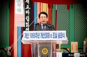 (중앙뉴스타임스 = 방재영 기자) 남양주시의회는 9일 남양주시 진접읍 봉선사 큰법당에서 열린 1056주년 개산대제 및 운허체 배포식에 참석했다. 운허체는 운허스님이 생전에 직접 쓰신 발원문의 육필을 토대로 남양주시와 봉선사가 함께 운허스님의 가르침과 정신을 현대적으로 계승하기 위해 개발했으며, 한글 2,350자와 특수문자 451자가 붓글씨체 폰트로 제작됐다. 이날 행사는 매년 진행되는 봉선사 개산대제와 더불어 한글날을 맞아 진행한 운허체 배포식으로 특별한 의미를 더했으며, 조성대 남양주시의회 의장을 비롯해 이정애 부의장, 이경숙 복지환경위원장, 김지훈(국) 의원, 김동훈 의원, 이수련 의원, 김상수 의원 및 홍지선 부시장, 국회의원 및 도의원, 불자와 시민 등 500여명이 참석한 가운데 개최됐다. 먼저, 개산대제 행사는 부전스님의 명종을 시작으로 △개회선언 △삼귀의례 △우리말반야심경 순으로 진행됐으며, 이후 열린 운허체 배포식은 △제작 경과보고 △발원문 현수막 제막 △봉선사 주지 호산스님의 봉행사 △두산일면 대종사, 여산암도 대종사의 치사 △축사 순으로 진행됐다. 조성대 의장은 축사를 통해“불교의 정신을 이어온 봉선사에서 한글 서체를 통해 그 정신을 널리 전