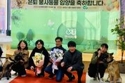 (중앙뉴스타임스 = 방재영 기자) 경기도가 지난달 육군 군견훈련소에서 반려마루 여주로 데려온 은퇴군견 ‘푸른’, ‘염토’, ‘키위’ 3마리 모두가 새로운 가족을 만났다. 경기도는 3일 입양을 가게 된 ‘염토’, ‘키위’와 입양가족 등 관계자가 참석한 가운데 축하식을 열고 입양 서약서와 입양 물품 및 꽃다발 전달, 기념 촬영을 진행했다. ‘푸른’이는 사전 입양을 기다리고 있는 가족이 있어 건강검진과 이동훈련을 마치고 지난 2월 26일 새터전으로 옮겼다. ‘염토’와 ‘키위’는 반려마루 여주에서 입양 홍보를 시작하자마자 입양 희망가족이 생겨 절차를 마치고 입양됐다. 은퇴군견 3마리는 반려마루 여주로 온 지 1개월도 안돼 새로운 견생을 시작하게 됐다. 키위를 입양한 입양자 이기철님은 “평소 군견에 대한 관심이 있었고, 대형견을 키울 수 있는 여건이기에 이왕이면 봉사동물의 남은 여생을 편하게 해주고 싶다는 생각이 들었다”며 “염토와 키위를 만나보니 애교도 많고 뛰어오르며 손을 핥는데 같이 운동도 많이 하면서 지내야 할 것 같다”며 소감을 전했다. 육군 군견훈련소 관계자는 반려마루 여주로 온 은퇴군견의 빠른