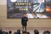 (중앙뉴스타임스 = 방재영 기자) 강원특별자치도는 4일 강릉 중앙고등학교에서 고교생 100여 명을 대상으로 ‘찾아가는 강원특별자치도 특별강연’을 진행했다. 이번 강연은 2025년 도정 방향인 ‘도민 속으로’의 일환으로 도지사가 직접 학교를 찾아 미래세대와 눈높이 소통하는 자리로 마련됐다. 김 지사는 강원특별자치도의 출범 의미와 변화, 그리고 미래산업을 통해 학생들에게 열리는 새로운 기회를 공유했다. 이후 학생 장기자랑, 도지사 특강, 학생들과의 질의응답 및 소통 시간으로 구성되며 현장 분위기를 뜨겁게 달궜다. 김진태 도지사는 강의에서 “강릉 중앙고는 90년 역사의 축구 명문에서 반도체 명문고로 변신하고 있다”며, “강원특별자치도는 지금 미래산업 지도를 다시 그리며 변화의 중심에 서 있는데 여러분이 곧 강원의 미래”라 격려했다. 한편, 다음 찾아가는 특별강연은 12월 17일 원주 미래고등학교에서 이어질 예정이다.