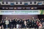 (중앙뉴스타임스 = 방재영 기자) 원주시농업기술센터는 지난 18일 센터 생명농업관에서 ‘제23기 원주농업대학 입학식’을 개최하고, 지역 농업의 미래를 이끌 전문농업경영인 양성을 위한 교육과정을 시작했다. 2004년 개설된 원주농업대학은 현재까지 총 2,450명의 수료생을 배출했으며, 전국 농업인대학 평가에서 우수기관에 6회 선정되는 등 지역을 대표하는 전문 농업교육 과정으로 자리매김해 왔다. 올해는 사과학과와 복숭아학과 2개 과정에 총 48명의 교육생이 입학했으며, 3월부터 11월까지 총 25회에 걸쳐 100시간 이상의 교육과정이 운영될 예정이다. 품목별 재배 기술을 비롯해 농가별 애로 기술 해결, 선진 농업 현장 견학, 우수사례 학습, 영농실습 등 이론과 실용 중심 과정으로 교육을 편성해 농업인들의 현장 대응력과 전문 역량을 높일 계획이다. 김준희 농업기술센터 소장은 “원주농업대학은 지역 농업을 이끌 전문농업인을 체계적으로 육성하는 핵심 교육과정”이라며, “교육생들이 배움과 실천을 통해 경쟁력을 갖춘 전문농업경영인으로 성장해 원주농업 발전에 중추적 역할을 해주길 기대한다”라고 말했다.