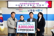 (중앙뉴스타임스 = 방재영 기자) 인천 남동구는 인천희망지킴이봉사회(회장 김재덕, 조미령)로부터 이웃돕기 후원금 300만 원을 기탁받았다고 5일 전했다. 이번에 기탁된 후원금은 남동구 관내 사회복지시설 및 단체에 전달돼 취약계층을 위한 복지사업 추진에 사용될 예정이다. 조미령 회장은 “도움이 필요한 분들께 조금이나마 보탬이 되고자 후원금을 기탁하게 됐다”라며 “앞으로도 다양한 방식으로 나눔을 실천해 나가겠다”라고 말했다. 박종효 남동구청장은 “어려운 이웃을 위해 따뜻한 나눔을 실천해 주신 인천희망지킴이봉사회에 깊이 감사드린다”라며 “후원금은 꼭 필요한 곳에 소중히 사용하겠다”라고 밝혔다. 한편, 인천희망지킴이봉사회는 현재 회원 16명이 도배·장판 교체 등 건축 기술을 보유한 봉사자들로 구성돼 주거환경이 열악한 이웃을 위한 ‘희망의 집수리’ 봉사활동을 꾸준히 펼치고 있다.