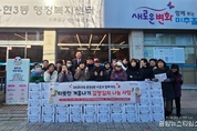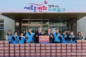(중앙뉴스타임스 = 방재영 기자) 인천 미추홀구는 4일 (사)국제위러브유운동본부로부터 김장 김치 90상자를 전달받았다. 이번 후원 물품은 회원들의 정성으로 마련된 것으로, 관내 저소득층 주민들에게 지원될 예정이다. 전달식에 참석한 (사)국제위러브유운동본부 정지현 지부장은 “소외된 이웃과 어려움을 겪는 분들이 따뜻하고 건강하게 겨울을 보낼 수 있기를 바란다”라며 “앞으로도 꾸준히 나눔 활동을 이어가겠다”라고 전했다. 이영훈 구청장은 “어려운 이웃을 생각하는 국제위러브유운동본부 회원들의 따뜻한 마음이 잘 전해질 수 있도록 필요한 곳에 잘 전달하겠다”라며 “소외된 이웃을 위해 나눔과 봉사를 실천해 주시는 회원님들께 감사드린다”라고 말했다. 한편, (사)국제위러브유운동본부는 매년 명절을 비롯해 어려운 이웃을 위해 식료품, 라면, 이불 등과 같은 물품을 후원하며 따뜻한 나눔을 실천하고 있다.
