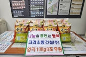 (중앙뉴스타임스 = 방재영 기자) 인천 남동구 간석1동 행정복지센터는 최근 고려소방건설(주) 박은영 이사로부터 양곡 10kg 8포를 기탁받았다고 24일 밝혔다. 박은영 이사는 평소에도 늘 어려운 이웃들을 위해 라면, 양곡기탁, 장학금, 초록우산 등 다양한 나눔 활동을 이어오고 있다. 이번 기탁 역시 어려운 이웃들에게 추워지는 계절이 다가온 만큼 따듯한 온정을 전하고자 마련됐다. 박은영 이사는 “작은 정성이지만 지역의 소외된 이웃들에게 힘이 되길 바란다”라며 “관내 식생활로 어려운 이웃들에게 잘 전달되었으면 좋겠다”라고 말했다. 김소영 동장은 “이웃을 위해 늘 나눔을 실천해주셔서 감사드린다”라며 “기탁받은 양곡은 도움이 필요한 분들에게 소중히 사용하겠다”며 말했다.