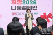 (중앙뉴스타임스 = 이광운 기자) 안성시는 4일 경기 사회복지공동모금회와 함께 ‘희망 2026 나눔캠페인’ 행사를 열고, 연말연시 따뜻한 나눔 분위기 확산에 나섰다. 이날 행사에는 김보라 안성시장을 비롯하여 경기 사회복지공동모금회 김효진 사무처장 및 관계자, 그리고 지역 내 주요 기부 참여 기업인 ㈜그랜드썬기술단에스피, 한솔아이원스(주), ㈜삼양컴텍, 한일크린에너지(주), 골프클럽큐레저산업(주) 등 기업인들이 함께해 자리를 빛냈다. ‘희망 2026 나눔캠페인’은 2025년 12월 1일부터 2026년 1월 31일까지 두 달간 진행되며, 안성시의 모금 목표액은 5억 원이다. 시민과 지역 기업이 정성으로 모은 성금과 물품은 관내 어려운 이웃에게 전달될 예정이다. 행사 주요 내용으로는 캠페인 소개를 시작으로 ‘사랑의 온도탑 제막식’과 ‘명사 열매달기’ 행사가 진행됐으며, 이어 기부금(품) 전달식이 열려 본격적인 나눔캠페인의 출발을 알렸다. 김보라 안성시장은 “이번 ‘희망 2026 나눔캠페인’을 통해 따뜻한 나눔의 가치가 지역사회 전반에 퍼지길 바란다”며 “시민 모두가 동참해 어려운 이웃과 온정을 나누는 시간이 되기를 기대한다”고 말했다. ‘희망 2026 나눔캠페인’