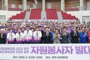 (중앙뉴스타임스 = 방재영 기자) 광주시는 13일 광주시민체육관에서 제72회 경기도체육대회와 제16회 경기도장애인체육대회의 성공적인 개최를 위한 자원봉사자 발대식을 개최했다. 이날 행사에는 자원봉사자와 체육 관계자 등 300여 명이 참석한 가운데 자원봉사자 발대식과 소양 교육을 진행했다. 행사는 결의문 낭독과 기념촬영 등 발대식에 이어 자원봉사자의 역할과 자세를 공유하는 소양교육으로 진행됐다. 자원봉사자들은 대회 기간 동안 경기 운영 지원, 안내 및 질서 유지, 환경 정비 등 다양한 분야에서 활동하며 선수단과 관람객이 안전하고 편리하게 대회에 참여할 수 있도록 지원할 예정이다. 또한, 기본 친절 교육과 안전교육 등을 통해 자원봉사자로서 필요한 역량을 강화하고 대회를 찾는 선수단과 방문객들에게 광주시의 따뜻한 이미지를 전달하는 역할을 맡게 된다. 방세환 시장은 “자원봉사자 여러분은 대회의 성공을 이끄는 가장 든든한 주역”이라며 “여러분의 헌신과 열정이 선수단과 방문객들에게 감동을 전하고 광주시의 품격을 높이는 밑거름이 될 것”이라고 말했다.
