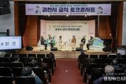 (중앙뉴스타임스 = 방재영 기자) 과천시는 안양·군포·의왕·과천 공동급식지원센터와 함께 지난 3일 과천시청소년수련관에서 ‘건강·환경·배려로 만나는 기후급식 이야기’를 주제로 급식 토크콘서트를 개최했다고 밝혔다. 이번 토크콘서트에는 신계용 과천시장을 비롯해 공동급식지원센터 센터장, 관문초 영양교사, 과천고 학부모, 우수식품생산자협동조합 사무국장, 식생활 강사 등 다양한 급식 관계자가 패널로 참여했다. 행사는 기후위기 시대 학교급식이 지향해야 할 가치인 ‘건강·환경·배려’를 중심으로 친환경 급식, 저탄소 식생활, 식재료 안전성 강화 등 지속가능한 급식 정책 방향을 모색하고 현장의 목소리를 듣기 위해 마련됐다. ‘건강’ 분야에서는 친환경 학교급식 실현을 위한 공동급식지원센터 설립 과정과 친환경 우수 가공식품 차액지원 사업 등이 소개됐다. ‘환경’ 분야에서는 저탄소 레시피 개발과 지속가능한 식생활 교육 지원 사례가 공유됐으며, ‘배려’ 분야에서는 친환경 농산물 생산자가 참여해 친환경 농업의 의미와 지역 연계의 중요성을 강조했다. 관문초 영양교사는 “센터에서 식재료 위생점검과 안전성 검사를 지원해 주기 때문