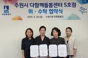 (중앙뉴스타임스 = 방재영 기자) 수원특례시는 26일 시청 아동돌봄과 회의실에서 비영리민간단체 ‘꿈자람꿈드리’와 다함께돌봄센터 5호점 위·수탁 계약을 체결했다. 위탁 기간은 2025년 10월 1일부터 2030년 9월 30일까지 5년이다. 수원시 다함께돌봄센터 5호점은 영통구 중부대로448번길 28(원천레이크파크) 내 100㎡ 규모 시설로, 센터장 1명, 돌봄교사 1명, 시간제 돌봄교사 1명이 근무하며 아동들을 돌보고 있다. 수원시는 수탁자 선정 심의위원회를 열어 응모 기관의 운영 능력을 검토했고, 기존 운영법인인 꿈자람꿈드리를 위탁 기관으로 선정했다. 안정적인 운영과 서비스 연속성이 확보될 것으로 기대된다. 다함께돌봄센터는 방과 후 돌봄이 필요한 6세~12세 아동을 대상으로 ▲급·간식 제공 ▲놀이·학습 지도 ▲특별활동 프로그램 운영 등 맞춤형 돌봄서비스를 제공한다. 우선으로 맞벌이 가정 초등 저학년과 다자녀 가구 아동이 이용할 수 있다. 센터는 월~금요일 주 5일 운영하며, 학기 중에는 오전 11시부터 오후 8시까지, 방학 중에는 오전 9시부터 오후 8시까지 문을 연다. 수원시 관계자는 “부모가 안심할 수 있고 아동이 행복하게 지낼 수 있는 돌봄환경을 조성하