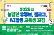 (중앙뉴스타임스 = 방재영 기자) 안성시농업기술센터는 지역 농업인의 디지털 매체 활용 능력을 높이고 농산물 홍보 역량을 강화하기 위해 ‘2026년 농업인 유튜브·블로그·AI 활용 교육’ 교육생을 모집한다고 2일 밝혔다. 이번 교육은 블로그 운영뿐만 아니라 인공지능(AI)과 유튜브 동영상을 접목한 실전형 교육 과정으로 구성됐다. 안성시농업기술센터는 오는 2월 24일부터 3월 18일까지 매주 화·수·목요일 총 11회에 걸쳐 정보화교육장에서 전문 교육을 실시한다. 교육 내용은 블로그 만들기 및 AI를 활용한 게시물 작성 방법, 유튜브 채널 개설과 프로필 작성, 스마트폰을 활용한 동영상 촬영 및 편집 기술 등 실무 위주로 편성됐다. 교육 신청은 2월 2일부터 2월 20일까지 안성시청 홈페이지를 통한 온라인 접수 또는 농업지도과 방문 접수로 가능하다. 모집 인원은 10명 내외이며, 신청 시 교육참여신청서와 농업경영체등록확인서를 제출해야 한다. 합격자는 선정 후 문자로 개별 통보되며, 수료를 위해서는 전체 과정의 80% 이상 출석이 필요하다. 안성시농업기술센터 관계자는 “농업인이 직접 AI와 유튜브를 활용하여 고품질의 홍보 콘텐츠를 생산함으로써 농가 브랜드 가치를 높일