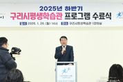 (중앙뉴스타임스 = 방재영 기자) 구리시는 지난 26일 구리시 평생학습관에서 강사와 수강생 등 60여 명이 참석한 가운데 ‘2025년 하반기 구리시 평생학습관 프로그램 수료식’을 개최했다. 구리시 평생학습관은 지난해 9월 8일부터 『교구 놀이 수학지도사』, 『힐링아트 패턴드로잉』 등 신규 강좌를 비롯해 『프랑스 자수』, 『일본어』, 『시니어 영어』, 『분노 조절 지도사』 등 총 65개 과정을 운영했으며, 이 중 622명이 성실히 참여해 수료했다. 백경현 구리시장은 “평생학습을 통해 꾸준히 성장해 나가는 시민 여러분께 존경과 격려의 박수를 보낸다”라며 “앞으로도 시민들이 공감과 소통 속에서 즐겁게 배우고 성장할 수 있도록 지원해, 구리시가 평생학습 도시로 지속적인 발전을 이룰 수 있도록 최선을 다하겠다”라고 말했다. 한편, 2026년 상반기 운영 강좌에 대한 수강 신청은 오는 2월 9일 오전 9시부터 구리시 평생학습 포털을 통해 선착순으로 접수한다.