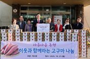 (중앙뉴스타임스 = 방재영 기자) 미추홀구를 사랑하는 사람들의 모임(회장 추연옥)은 지난 21일 인천 미추홀구(구청장 이영훈)에 저소득층 지원을 위한 고구마 3kg 150상자(약 225만 원 상당)를 전달했다. 이번 기부는 지역 내 어려운 이웃들의 건강한 식생활을 돕고, 따뜻한 나눔 문화를 확산하기 위해 마련됐다. 전달된 고구마는 관내 저소득 가정에 전달돼, 이웃사랑 실천에 큰 도움이 될 예정이다. 추연옥 회장은 “미추홀구를 사랑하는 마음으로 작은 정성을 모았다.”라며, “앞으로도 지역사회와 함께하는 다양한 나눔 활동을 이어가겠다.”라고 전했다. 이영훈 구청장은 “미사모의 따뜻한 나눔과 지속적인 사회공헌 활동에 깊이 감사드린다.”라며, “이번 기부가 지역 내 도움이 필요한 분들에게 실질적 지원이 되고 나눔 문화 확산에도 큰 힘이 되길 바란다.”라고 말했다. 한편, 미사모는 매년 저소득층을 위한 후원 및 자선행사를 꾸준히 이어오고 있으며, 올해는 직접 담근 오이지를 관내 독거노인 등에게 전달하는 등 지역사회 복지 향상에 앞장서고 있다.
