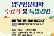 (중앙뉴스타임스 = 방재영 기자) 양구군은 오는 8일 양구인문학박물관 세미나실에서 인문대학 수료식 및 특별강연을 진행한다. 양구 인문대학은 올해 4월부터 11월까지 매월 1회 ‘조화와 균형의 인문학’을 주제로 운영됐다. 인문학 전문 강의를 통해 군민의 인문학적 소양을 함양하고, 양구군을 인문학 중심도시로 육성하기 위한 기반을 마련하고자 추진됐다. 올해 인문대학에는 총 53명이 접수해 이 중 25명이 수료한다. 수료식에서는 전체 강의의 80% 이상을 이수한 수강생에게 양구군수와 김형석 명예교수 명의의 수료증이 수여된다 수료식 이후에는 김형석 명예교수가 ‘인문학은 가치관의 탄생이다’를 주제로 특별강연을 진행한다. 강연에서는 급변하는 현대사회 속에서 개인의 사유, 가치 판단, 삶의 태도 형성에 있어 인문학이 갖는 의미를 되짚어볼 예정이다. 진행된 강좌 △고미술과 현대미술의 균형적 이해 △소통을 위한 공감 독서법 △진심을 담은 옛 사람들의 소통법 △기계와 짐승 사이에서 △덜 소비하고 더 나누는 삶 △어머니의 밥상을 찾아서: ‘귀향’ 등에서 다양한 인문학적 관점을 다뤄 수강생들의 높은 호응을 받았다. 임경빈 인문학박물관장은 “인문대학 운영을 통해 군민들이 일상에서 인