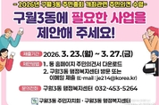 (중앙뉴스타임스 = 방재영 기자) 인천 남동구 구월3동 주민자치회는 23일부터 31일까지 2026년 마을사업 발굴을 위한 주민 의견 공모를 실시한다고 밝혔다. 이번 마을 의제 공모는 올해 7월 개최 예정인 제6회 주민총회에 상정할 안건 발굴을 위해 주민들이 마을에서 느끼는 불편 및 필요사항 등을 조사해 주민 의견을 최대한 반영하고자 마련됐다. 이번 공모는 구월3동에 거주하는 주민 또는 생활 주민이라면 누구나 참여할 수 있으며, 마을 가꾸기·주민화합·지역복지·등 구월3동 발전을 위한 주민들의 다양한 의견을 수렴할 예정이다. 의견 제안서는 구월3동 행정복지센터 방문 또는 이메일로 접수 가능하며, 기타 자세한 사항은 구월3동 행정복지센터 홈페이지를 통해 확인할 수 있다. 김희석 회장은 “이번 마을 의제 공모 활동을 통해 주민들의 목소리를 직접 듣고 주민이 행복한 구월3동을 만들기 위해 다양한 의제를 발굴할 예정이니, 주민분들의 많은 관심과 참여를 바란다”라고 말했다. 최옥주 구월3동장은 “주민자치회가 주민들과 소통하며 자치분권 실현을 통해 구월3동이 한 걸음 더 발전할 수 있기를 바라며, 주민 의견이 마을사업에 반영될 수 있도록 동에서도 최선을 다해 지원하겠다”라