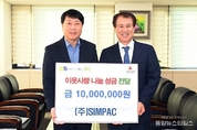 (중앙뉴스타임스 = 방재영 기자) 인천 부평구는 11일 ㈜SIMPAC으로부터 연말 이웃사랑 나눔 성금 1천만원을 전달받았다. 성금은 사회복지공동모금회를 통해 지역 내 어려운 이웃에게 전달될 예정이다. ㈜SIMPAC(회장 최진식)은 부평구 청천동에 위치한 금속 및 산업기계 제조 분야의 대표적 중견기업이다. 이 기업은 지난 2012년부터 매년 1천만원 성금을 꾸준히 기탁하고 있다. 최진식 ㈜SIMPAC 회장은 “소외된 이웃을 위한 작은 정성이 모두가 따뜻한 겨울을 보내는 데 도움이 되길 바란다”며 “앞으로도 지역사회를 위한 기업의 사회적 책임을 실천하기 위해 이웃사랑 나눔을 지속적으로 이어가겠다”고 전했다. 차준택 부평구청장은 “어려운 경제 여건 속에서도 나눔을 실천해 주신 데 깊이 감사드리며, 기탁된 성금은 도움이 필요한 이웃을 위해 소중히 사용하겠다.”고 말했다.