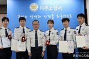 (중앙뉴스타임스 = 방재영 기자) 파주소방서는 8일 오전 서장 집무실에서 시민의 생명 보호와 소방행정 발전에 기여한 업무 유공 소방공무원에 대한 표창 수여식을 개최했다고 밝혔다. 이번 수여식은 각종 재난 현장과 응급의료 위기 상황 속에서도 투철한 사명감으로 맡은 바 직무를 성실히 수행한 직원들의 노고를 치하하고 사기를 진작하기 위해 마련됐다. 이날 행사에는 수여 대상자 11명 중 근무자 등을 제외한 5명이 참석했으며, ▲중증세이버 순금기장 ▲의정갈등 대응 유공(소방청장) ▲구급업무 유공(도지사) 분야에 대한 시상이 진행됐다. 특히 광탄119안전센터 박진호 소방장과 탄현119안전센터 김우진 소방장은 남다른 헌신을 인정받아 2개 분야에서 동시에 수상하는 영예를 안았다. 박진호 소방장은 ‘중증세이버 순금기장’과 의정갈등 상황 속 비상 진료 체계 유지에 기여한 공로로 소방청장 표창을, 김우진 소방장은 중증 응급환자의 생명을 소생시킨 공로로 ‘중증세이버 순금기장’과 함께 구급현장분야 유공 표창을 각각 수여 받았다. 또한 운정119안전센터 황보라 소방사가 중증세이버 순금기장을, 재난대응과 전영대 소방장과 금촌119안전센터 손대영 소방장이 의정갈등 대응 유공으로 소방청장