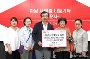 (중앙뉴스타임스 = 방재영 기자) 지난 3일, 청정하남시니어협회(청시회)는 성금 100만원을 하남시에 전달하고 기탁식을 가졌다. 이날 기탁식에는 이현재 하남시장을 비롯해 박규섭 회장 등 관계자들이 참석하여 자리를 빛냈다. 박규섭 회장은 “추석 명절을 맞아 소외된 이웃들에게 정을 나누고, 조금이나마 도움이 되길 바라며 경제적으로 어려운 시기를 잘 극복해 나갔으면 한다”고 말했다. 이현재 하남시장은“ 따뜻한 마음을 나눠주시는 청정하남시니어협회에 깊이 감사드리며 기탁해 주신 성금은 관내 어려운 이웃에게 소중히 전달하겠다”고 전했다. 이날 기탁된 성금은 관내 취약계층에게 배부될 예정이다.