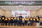 (중앙뉴스타임스 = 방재영 기자) 인천 미추홀구종합자원봉사센터는 지난 2일 구청 대회의실에서 ‘2025 자원봉사자 대회’를 개최하고, 한 해 동안 지역사회를 위해 헌신한 자원봉사자들에게 감사를 전하는 뜻깊은 자리를 마련했다. 이날 행사에는 이영훈 미추홀구청장, 전경애 미추홀구의회 의장을 비롯한 내빈들과 자원봉사자 등 250여 명이 참석했으며, 지역사회를 위해 나눔과 배려를 실천하며 자원봉사 활성화에 기여한 자원봉사자 133명에게 표창이 수여됐다. 또한 다채로운 축하공연과 함께 5000시간 이상 봉사활동을 실천한 15명의 ‘자원봉사 왕’ 핸드프린팅 퍼포먼스도 진행돼 자원봉사 문화의 가치를 더욱 높였다. 유중형 센터장은 “올 한 해 지역 곳곳에서 따뜻한 변화를 만들어주신 자원봉사자분들께 진심으로 감사드린다”라며 “앞으로도 다양한 참여 기회를 확대해 더 많은 시민이 나눔에 동참할 수 있도록 노력하겠다”고 말했다.