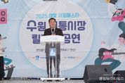 (중앙뉴스타임스 = 이광운 기자) 국내외 정상급 재즈 아티스트들의 음악으로 채워진 ‘2025 수원재즈페스티벌’이 19·20일 광교호수공원 재미난 밭에서 열렸다. 올해 수원재즈페스티벌에는 밴드 Bump2Soul(범프투소울), 재즈 보컬 양지, Bruce Katz Band(브루스 카츠 밴드, 미국), 임용훈&Sambistas(쌈비스타즈), 김윤아, NOHD Band(노드 밴드), 아프리카 만뎅 음악 밴드 Tekeré(떼게레), Cros Band(크로스 밴드, 미국), 조젤리&지민도로시, 제이블랙, 웅산밴드 등이 출연했다. 19일 공연장을 찾은 이재준 수원시장은 “수원재즈페스티벌에 함께해 준 여러분께 감사드린다”며 “27일부터 수원화성문화제, 2025 수원화성미디어아트, 정조대왕 능행차 공동재현 등 가을 3대 축제에도 많은 시민이 찾아주시길 바란다”고 말했다.