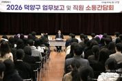 (중앙뉴스타임스 = 방재영 기자) 고양특례시는 지난 26일 덕양구청 대회의실에서 ‘2026년 덕양구 업무보고 및 직원 소통간담회’를 개최했다. 업무보고에는 이동환 고양시장과 주시운 덕양구청장을 비롯해 구청 13개 과·21개 동행정복지센터의 부서장, 8·9급 저연차 공무원 등 100여 명의 직원이 참석했다. 2026년 업무보고는 주시운 덕양구청장과 부서장의 보고를 통해 민선8기 덕양구 핵심 성과와 2026년 업무 추진 방향을 간략히 공유하고, 직원들과의 자유로운 토론 시간을 확대해 현장의 목소리를 청취하는 데 중점을 뒀다. 이날 부서별 업무보고와 관련해 이동환 시장은 ▲덕양구를 대표하는 창릉천 유채꽃·코스모스 축제의 성공적 개최를 위한 주관 부서와 행신2동 행정복지센터의 적극적인 협조 ▲지적재조사 사업 등 시민 불편 해소를 위한 주요 사업의 속도감 있는 추진을 당부했다. 특히 20~30대 직원들과 격의 없이 소통하는 자유토론 시간이 눈길을 끌었다. CES 2026에서 고양시에 도입하고 싶다고 생각한 기술 분야, 전 세계적인 주목을 받은 ‘고양콘’에 대한 궁금증 등 다양한 주제로 활발한 의견 교환이 이