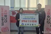 (중앙뉴스타임스 = 방재영 기자) 인천 부평구 갈산1동은 17일 서부사료(주)로부터 ‘갈산1동이 응원해! 우리동네 꿈나무 지원사업’ 장학금 200만 원을 기탁받았다고 밝혔다. 이 사업은 갈산1동에 거주하는 초등학생 가운데 학업 성적이 우수하고 성실한 학생을 발굴해 지역 기업과 연계해 지원하는 맞춤형 교육 지원 사업이다. 서부사료(주)의 후원으로 마련된 장학금은 지역 내 초등학생에게 매월 20만 원씩 지급될 예정이며, 교재 구입이나 학원비 등 학습 지원에 사용된다. 정세진 서부사료(주) 대표이사는 “우리 지역의 미래인 아이들이 꿈을 포기하지 않고 건강하게 성장하는 데 작은 밑거름이 되길 바란다”며 “앞으로도 지역사회와 상생하며 이웃들에게 실질적인 도움이 되는 사회공헌 활동을 꾸준히 이어가겠다”고 말했다. 김형조 갈산1동장은 “지난 설 명절 온누리상품권 후원에 이어 다시 한번 지역 인재 양성을 위해 따뜻한 마음을 전해주신 서부사료(주)에 진심으로 감사드린다”며 “기탁해주신 성금은 아이들이 꿈을 키워 나가는 데 소중히 사용하겠다”고 말했다. 한편 서부사료(주)는 지역 내 어려운 이웃을 위해 매년 설 명절마다 꾸준한 나눔 활동을 이어오며 지역사회에 따뜻한 온기를 전