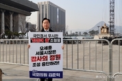 (중앙뉴스타임스 = 방재영 기자) 더불어민주당 김준혁 국회의원이 오세훈 서울시장의 광화문 ‘감사의 정원’ 조성 사업 강행을 비판하며 기자회견과 1인 시위를 진행했다. 김준혁 국회의원(더불어민주당·수원정)은 17일 오후 국회에서 기자회견을 열고 서울시가 추진 중인 광화문 ‘감사의 정원’ 조성 사업을 강하게 비판했다. 김 의원은 “국토교통부로부터 위법 지적을 받고 공사 중지 명령까지 받은 사업을 730억 원의 예산으로 다시 강행하려는 것은 시민과 법을 무시하는 행정”이라며 사업 전면 중단을 촉구했다. 김 의원은 기자회견에서 “서울시는 지난 2월 국토교통부로부터 국토계획법과 도로법 위반 소지가 있다는 이유로 공사 중지 명령을 받았음에도 불구하고, 사업 자체를 재검토하기보다는 도시관리계획을 변경해 다시 추진하겠다는 계획을 밝혔다”며 “절차적 위법성이 지적되자 규정을 바꿔 사업을 밀어붙이겠다는 것은 책임 있는 행정이 아니다”라고 비판했다. 서울시가 지난해부터 추진 중인 ‘감사의 정원’ 사업은 광화문광장에 ‘받들어총’ 형태의 돌기둥 조형물 23개를 설치하고 지하에 참전국 용사를 기리는 전시 공간과 대형 스크린을 조성하는 계획이다. 총 사업비는 약 730억 원 규모다.