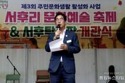(중앙뉴스타임스 = 이광운 기자) 양평군 서종면은 지난 11일 서후리 마을회관 일원에서 ‘제3회 서후리 문화예술축제 및 탁구장 개관식’을 성황리에 개최했다. 이날 행사에는 홍주표 서종면장과 박명숙·이혜원 경기도의회 의원, 지역 기관·단체장, 평생학습센터 회원, 주민 등 200여 명이 참석해 마을의 문화와 소통이 어우러진 뜻깊은 시간을 가졌다. 행사에서는 평생학습센터 회원들이 준비한 다양한 작품 전시와 공연이 진행되며, 주민들의 재능과 열정을 나누는 무대가 마련됐다. 이어 진행된 탁구장 개관식에서는 새롭게 조성된 생활체육 공간을 둘러보며, 향후 마을 공동체의 건강한 여가활동 거점으로서의 역할에 대한 기대를 나눴다. 홍주표 서종면장은 “주민 여러분이 함께 준비한 문화예술축제와 탁구장 개관은 서종면 공동체의 또 다른 도약을 상징한다”며, “앞으로도 주민이 주도하는 생활문화와 건강한 여가문화가 자리 잡을 수 있도록 지속적인 지원을 아끼지 않겠다”고 밝혔다. 한편, 이번 행사는 지역 주민의 참여로 이뤄진 생활문화 축제이자 건강한 공동체 회복의 장으로, 문화와 체육이 조화를 이루는 서종면의 새로운 지역 축제로