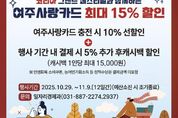 (중앙뉴스타임스 = 방재영 기자) 여주시는 ‘2025 코리아 그랜드 페스티벌’ 기간인 오는 29일부터 11월 9일까지 ‘여주사랑카드 최대 15% 할인’ 행사를 한다고 24일 밝혔다. 여주사랑카드 사용자는 충전 시 10% 선할인(인센티브 충전)을 받을 수 있으며, 행사기간 내 결제 시 추가로 5% 후캐시백 지원을 받을 수 있다. 5% 캐시백 행사는 예산 소진시까지 1인 최대15,000원까지 혜택을 받을 수 있도록 지원하며, 지원 내역은 모바일 경기지역화폐 앱에서 실시간으로 확인할 수 있다고 안내했다. (5% 캐시백 행사에 민생회복 소비쿠폰, 농어민기회소득 등 정책수당은 결제 금액에 포함되지 않는다.) 코리아 그랜드 페스티벌은 내수 활성화를 위해 중소벤처기업부, 산업통상자원부 등 정부가 주관하는 소비 축제로 10개 부처와 3만개 유통사가 참여하며, 지역사랑상품권과 디지털온누리상품권 추가 할인, 상생소비복권, 카드사 캐시백 이벤트 등을 진행한다. 여주시 일자리경제과 관계자는 “이번 행사를 통해 지역 내 소비 진작, 지역 소상공인들의 매출 증대에 도움이 되기를 바란다”라며, “시민분들의 많은 관심과 참여를 바란다”고 말했다.
