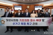 (중앙뉴스타임스 = 방재영 기자) 오산시의회(의장 이상복)는 18일 제300회 임시회 제2차 본회의에서 ‘오산시 기초의원 정수 확대 및 선거구 획정 촉구 건의문’을 의결했다. 이 자리에서 시의원들은 한목소리로 제도 개선을 강력히 촉구했다. 시의회는 “1991년 지방자치제가 출범할 당시 오산의 인구는 6만 7천 명, 예산은 241억 원이었지만 지금은 인구 27만 명에 예산 1조 1400억 원으로 도시 규모가 성장했다”며 “하지만 기초의원 수는 34년째 단 한 명도 늘지 않은 7명에 머물러 있다”고 지적했다. 이어 “현재 오산시 의원 1명이 대표하는 주민 수는 약 3만 8천 명으로, 전국 평균 1만 7천 명의 두 배가 넘는다”며 “이런 구조에서는 상임위원회 구성조차 어려워 행정 견제와 정책 심의 등 의회 본연의 역할을 제대로 수행할 수 없다”고 강조했다. 또한 “오산은 최근 5년간 인구가 22.7% 증가해 전국에서 세 번째로 높은 인구 성장률을 기록한 도시”라며 “의원 정수가 합리적 수준으로 확보되지 않는다면 정부의 균형발전 전략을 구호에 그칠 뿐”이라고 목소리를 높였다. 6월 지방선거를 앞두고 국회 차원의 논의가 지연되고 있는 상황에 대해서도 강하게 비판했다.