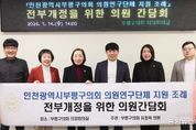 (중앙뉴스타임스 = 방재영 기자) 인천 부평구의회는 지난 14일 부평구의회 의정회의실에서 유정옥 의원(국민의힘, 부평3, 산곡3·4, 십정1·2동) 주관으로 '인천시부평구의회 의원연구단체 지원 조례'의 전부개정을 위한 의원 간담회를 개최했다고 밝혔다. 이번 간담회는 지난해 부평구의회 의회운영위원회 행정사무감사에서 의원연구단체 운영과 관련하여 지적됐던 사항에 대해 유정옥 의원과 5명의 의원이 함께 개선 방안을 모색하고자 마련됐다. 이날 참석한 의원들은 '인천시부평구의회 의원연구단체 지원 조례'의 문제점에 대해 공감하며, 전부개정을 통해 의원연구단체가 보다 책임감있게 효율적으로 운영되어야 한다고 의견을 모았다. 조례의 주요 개정 사항은 ▲하나의 의원연구단체에 최소 가입 의원 수 상향, ▲의원 1인당 가입 가능한 연구단체 수 축소, ▲전국동시지방선거로 의원 임기가 만료되는 해에 연구단체 등록 제한 등으로, 의원연구단체의 효율적 운영을 통한 연구활동의 몰입도를 강화하는 내용이 포함됐다. 해당 조례의 전부개정안을 대표발의한 유정옥 의원은 "최근 지방의회는 정책 중심의 의정활동이 요구되면서 의원 개개인의 전문성 강화와 체계적인 연구 활동 지원의 중요성이 더욱 커지고 있