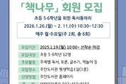 (중앙뉴스타임스 = 방재영 기자) 인천시교육청주안도서관은 예비 초등 5·6학년 학생을 대상으로 하는 독서동아리 ‘책나무’ 회원을 모집한다고 16일 밝혔다. 이번 프로그램은 독서지도 전문 강사와 함께 겨울방학 동안 꾸준한 독서 습관을 기르고, 또래 친구들과 책을 매개로 생각을 나누며 표현력을 키우기 위해 마련했다. 참여 학생은 책 읽기와 토론, 글쓰기, 창의적 책 놀이 활동을 하며, 활동 주제는 ▲새 친구 사귀기 디지털 윤리 ▲시문학 감상 및 낭독 ▲민주주의와 청렴 ▲중학교 교과서 수록 문학작품 미리보기 ▲우리 문화 등으로 구성했다. 참여 신청은 1월 19일 오전 10시부터 선착순으로 주안도서관 누리집에서 가능하며, 자세한 내용은 도서관 누리집을 참고하거나 어린이자료실로 문의하면 된다.