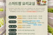 (중앙뉴스타임스 = 방재영 기자) 인천시교육청주안도서관은 오는 28일 ‘겨울방학 스마트팜 요리교실’을 운영한다고 10일 밝혔다. 이번 프로그램은 참가자가 스마트팜에서 직접 재배한 작물을 요리하며, 미래 농업의 가치와 지속 가능한 환경의 소중함을 자연스럽게 체험할 수 있도록 기획했다. 프로그램은 대상별 맞춤형 운영을 위해 1차시는 유아와 보호자, 2차시는 초등학생을 대상으로 구분하여 진행한다. 참여 신청은 주안도서관 누리집에서 13일 오전 10시부터 할 수 있으며, 자세한 사항은 어린이자료실로 문의하면 된다.