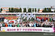 (중앙뉴스타임스 = 방재영 기자) 인천 동구는 지난 27일 제30회 동구 구민생활체육대회를 성황리에 개최했다고 밝혔다. 대회는 내년 출범하는 제물포구로의 개편 전 동구라는 이름으로 개최되는 마지막 체육대회로 그 의미를 더했다. 이번 대회는 생활체육 교류를 통한 주민 소통과 화합을 위해 개최됐다. 김찬진 동구청장과 유옥분 동구의회 의장을 비롯해 관내 11개 동 2천여 명의 주민이 참여했다. 식전 행사로 송4자걸즈, 조선소다팝 등 지역 댄스팀 공연으로 행사 분위기를 고조시켰다. 이어 송현1,2동 풍물단 공연과 함께 화려한 입장식을 가졌으며 11개 동 추진위원장들의 구민의 노래 제창과 릴레이 성화봉송을 시작으로 이번 체육대회의 본격적인 막이 올랐다. 동별 대항으로 공굴리기, 색판뒤집기, 볼품농구 등 다채로운 경기가 진행됐으며, 각 동별 열띤 응원이 펼쳐진 가운데 소통화합상 송림6동, 3등 만석동, 준우승 송현1,2동, 최우수상의 영예는 송림3·5동이 차지했다. 김찬진 동구청장은 “동구에서 개최되는 마지막 구민생활 체육대회로 많은 아쉬움을 주민 모두가 가지고 있을 것이라 생각한다”며 “2026년 7월 동구