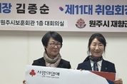 (중앙뉴스타임스 = 방재영 기자) 원주시재향군인회 여성회(회장 김종순)는 23일 관내 저소득 취약계층에 지정기탁 후원금 100만 원을 전달했다. 김종순 회장은 “지역 내 취약계층이 행복한 일상을 보내길 바라는 마음으로 후원금을 기부했다”라며 “어려운 이웃에게 조금이나마 도움이 되길 바란다”라고 전했다. 원주시 관계자는 “소외된 이웃들을 위해 따뜻한 마음을 나눠주셔서 감사드린다”라며 “앞으로도 지역사회에 많은 관심을 부탁드린다”고 말했다.