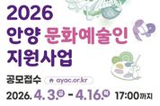 (중앙뉴스타임스 = 방재영 기자) 안양문화예술재단은 지역 예술인의 창작활동을 지원하고 문화예술 진흥을 도모하기 위한 ‘2026년 안양 문화예술인 지원사업’ 희망자를 오는 16일 17시까지 공개 모집한다. 이번 공모는 안양에서 활동하는 예술인과 예술단체를 대상으로 하며, 안정적인 창작환경 조성과 더불어 경기도 내 우수 예술인의 안양 유입을 통해 시민들에게 보다 풍성한 문화예술 향유 기회를 제공하는 것을 목적으로 한다. 총 사업 규모는 3억 2,630만원이며, 이 중 지원금은 2억 7,400만원이다. 특히 올해는 ‘정산 간소화’ 제도를 시범 도입하여 예술인의 행정부담을 줄이고 창작활동에 더욱 집중할 수 있는 환경을 조성할 계획이다. 재단 관계자는 “이번 지원사업을 통해 지역 예술생태계가 활성화되고, 시민들의 문화향유 기회가 확대됨으로써, 안양이 보다 풍요로운 문화도시로 도약하길 기대한다”고 밝혔다.