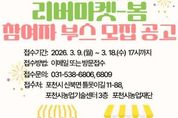 (중앙뉴스타임스 = 방재영 기자) 포천시농업재단은 오는 5월 한탄강 생태경관단지에서 열리는 ‘2026년 포천 한탄강 리버마켓-봄’ 행사에 참여할 부스 운영자를 공개 모집한다. 이번 리버마켓은 2026년 5월 2일부터 6월 7일까지 37일간 한탄강 생태경관단지 일원에서 개최된다. ‘한탄강 가든페스타’와 연계해 포천 농특산물 홍보와 판매, 다양한 먹거리와 체험 프로그램이 함께 운영될 예정이다. 모집 규모는 총 45개 부스로 △포천 농특산물 판매대 20개 △먹거리 판매대 17개 △푸드트럭 8대다. 농특산물 판매대는 포천시 농업인 및 농식품 기업을 대상으로 모집하며, 먹거리 판매대와 푸드트럭은 식품 영업 허가가 가능한 개인 또는 단체가 참여할 수 있다. 행사 기간에는 농특산물 판매와 함께 △산나물 페스티벌 △시니어 패션쇼 △봄 반려견 관광축제 △홀스타인 품평회 등 다양한 연계 행사가 진행돼 방문객들에게 풍성한 볼거리와 즐길거리를 제공할 예정이다. 참여 신청은 3월 18일 오후 5시까지 전자메일 또는 방문 접수를 통해 가능하며, 선정 결과는 3월 26일 포천시농업재단 누리집을 통해 발표할 예정이다. &nbs
