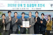 (중앙뉴스타임스 = 방재영 기자) 광주시는 지난 30일 시청 이음홀에서 광주시청 공무직노동조합과 2025년도 단체 및 임금협약을 체결했다. 이번 협약은 공무직 근로자의 근로조건 개선과 복지 증진을 도모하고 노사 간 신뢰와 협력을 바탕으로 안정적인 근무 환경을 조성하기 위해 마련됐다. 협약에는 임금 인상을 비롯해 복지제도 강화, 노조활동 개선 방안 등이 포함됐으며 노사는 상호 존중과 협력을 기반으로 협약 사항을 성실히 이행해 나가기로 합의했다. 시는 이번 협약 체결을 통해 공무직 근로자의 근로의욕과 직무 만족도가 향상되고 이에 따라 행정서비스의 질 또한 높아질 것으로 기대하고 있다. 이와 관련 방세환 시장은 “노사가 상호 신뢰를 바탕으로 대화와 타협을 통해 이뤄낸 의미 있는 결과”라며 “앞으로도 시정을 함께 이끌어가는 동반자로서 지속적인 소통을 통해 상생하는 노사관계를 만들어 가겠다”고 말했다.