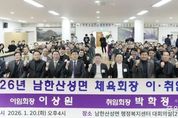 (중앙뉴스타임스 = 방재영 기자) 광주시 남한산성면 체육회는 지난 20일 남한산성면 행정복지센터에서 ‘2026년 남한산성면 체육회장 이·취임식’을 개최했다. 이날 행사에는 방세환 시장을 비롯해 소병훈 국회의원, 유영두 광주시(갑) 당협위원장, 시의원, 박범식 광주시 체육회장 등 내빈들이 참석해 자리를 빛냈다. 특히, 이원성 경기도 체육회장도 방문해 제72회 도민체전의 아낌없는 지원을 약속했다. 이번 이·취임식에서는 남한산성면 체육회 발전에 기여해 온 이상원 회장(남한산성면 이장협의회장)이 이임하고 박학정 회장(광주시 장애인체육회 부회장)이 신임 회장으로 취임했다. 행사는 국민의례와 내빈 소개를 시작으로 체육회장 인준패 및 감사패 전달, 이임사와 취임사, 위촉장 수여, 격려사와 축사 순으로 진행됐으며 기념 촬영을 끝으로 마무리됐다. 박학정 신임 회장은 취임사에서 “이번 이·취임식을 계기로 남한산성면 체육회가 새로운 도약을 준비하게 됐다”며 “체육을 통해 면민 모두가 건강과 화합을 함께 누릴 수 있도록 최선을 다하겠다”고 포부를 밝혔다. 이에 대해 방 시장은 “체육은 시민의 건