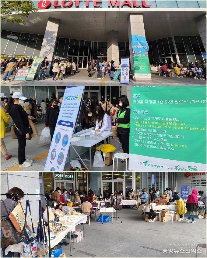 (중앙뉴스타임스 = 방재영 기자) 용인환경정의는 용인시민들의 자원순환에 대한 인식확산을 위해 지난 10월 30일 수지구에 있는 롯데몰 수지점 1층 정문 앞 야외공간에서 ‘떴다, 자원순환 실험가게’행사를 열었다.