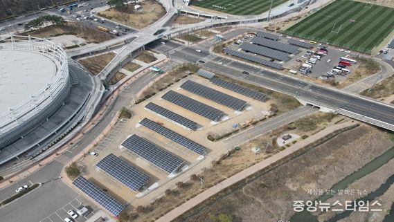 (중앙뉴스타임스 = 방재영 기자) 인천시는 26일 인천 남동경기장 제2주차장에서 시, 시의회, 시 체육회, 인천햇빛발전협동조합, 한국남부발전(주), 한국에너지공단 인천지역본부 등 100여명이 참석한 가운데 남동경기장 주차장 태양광발전설비설치를 완료하고 준공식을 개최했다고 밝혔다.