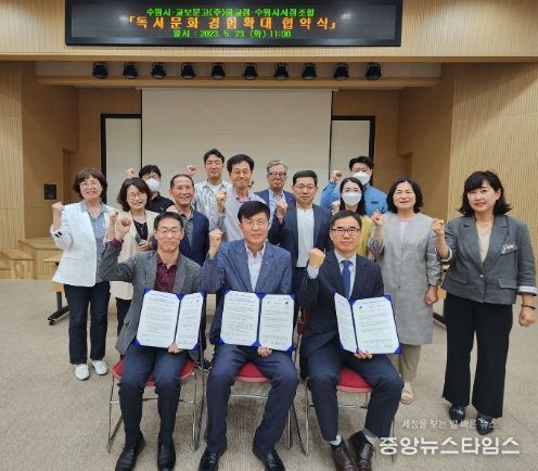 (중앙뉴스타임스 = 이광운 기자) 수원시는 23일 선경도서관 강당에서 교보문고(주) 광교점, 수원시서점조합과 잇따라 협약을 체결하고, 수원시민의 독서문화 경험 확대를 위해 협력하기로 했다.