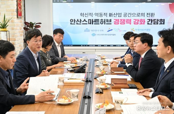 (중앙뉴스타임스 = 방재영 기자) 안산시는 지난 31일 지역 국회의원 등과 안산스마트허브 경쟁력 강화를 위한 정책간담회를 개최했다고 1일 밝혔다.