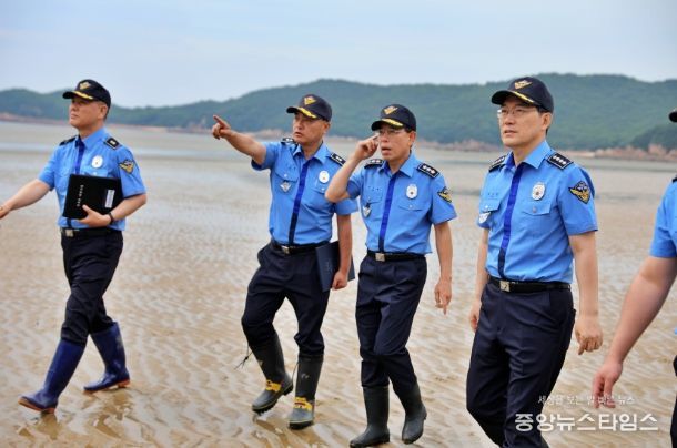 하늘바다 파출소를 찾은 김 청장은 “외부에서 갯벌을 찾아 해루질을 하는 관광객은 바닷가 지형 특성과 물때를 잘 모르고 무리한 활동을 하다가 사고가 나는 경우가 많다”고 지적하고, “갯벌 고립사고가 많이 발생하는 취약 시간에 경찰력과 장비를 동원한 집중적인 순찰을 실시하고, 지자체, 소방, 군 등과의 협조 체제를 재점검하여 인명 사고 예방에 최선을 다해달라”고 당부했다.