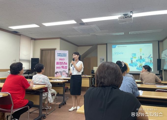 (중앙뉴스타임스 = 이광운 기자) 수원시 팔달여성새로일하기센터와 수원시가족여성회관은 15일 가족여성회관 문화관에서 ‘2023 중장년 여성 사회재참여 맞춤특강’을 열었다.