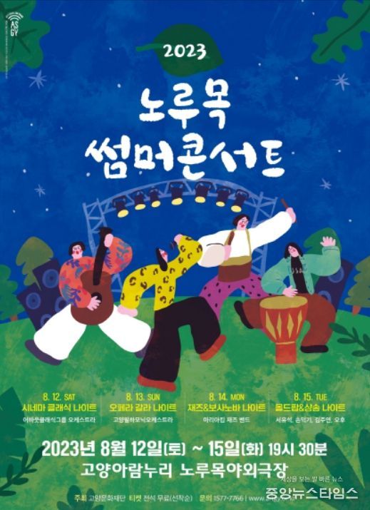 (중앙뉴스타임스 = 이광운 기자) 고양문화재단은 8월 여름휴가 시즌을 맞이하여 온 가족이 자연 속에서 함께 즐길 수 있는 무료 야외 음악 콘서트인 '2023 노루목 썸머 콘서트'를 8월 12일 토요일부터 15일 화요일까지 4일간 매일 19시 30분에 고양아람누리 노루목야외극장에서 펼쳐진다.