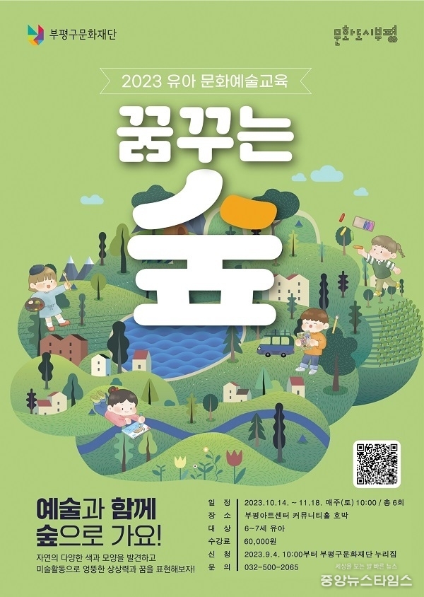 (중앙뉴스타임스 = 방재영 기자) 인천 부평구 문화재단이 9월 4일부터 유아들의 생태체험 미술문화예술교육 ‘꿈꾸는 숲’ 2기 참여자를 모집한다.