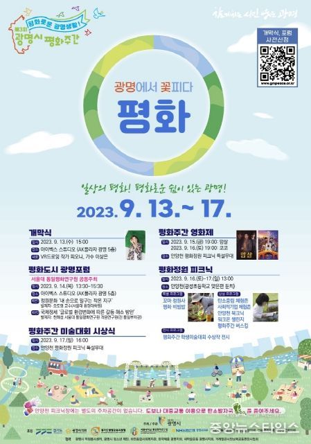 (중앙뉴스타임스 = 이광운 기자) 광명시가 13일부터 17일까지 5일간 ‘일상의 평화, 평화로운 광명생활’을 주제로 제3회 광명시 평화주간을 진행한다.